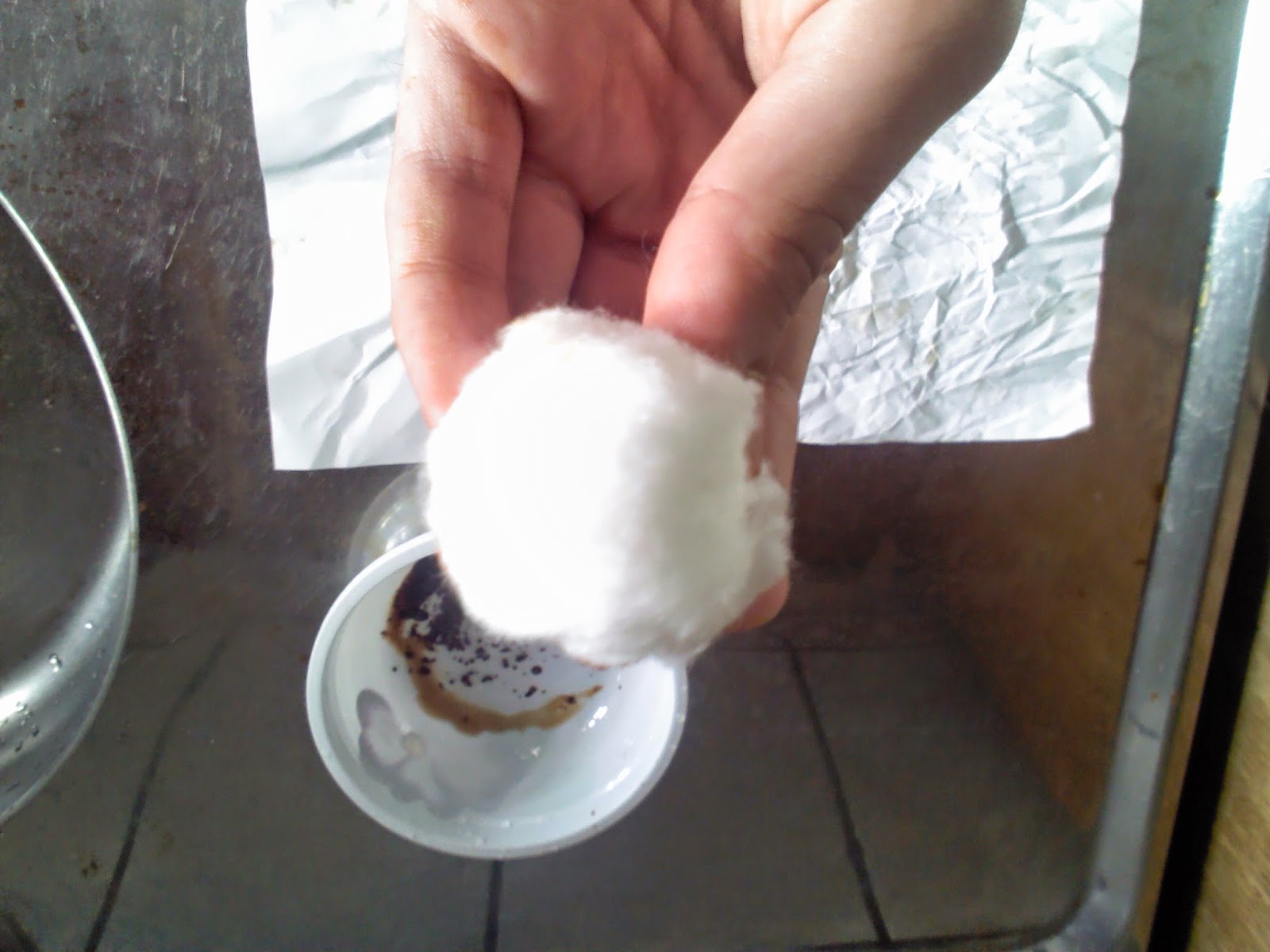 2. Molhe o algodão e passe sobre a folha A4