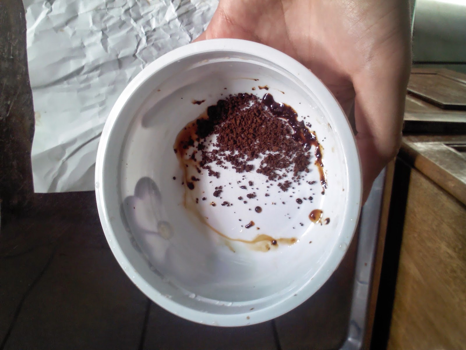 1. Despeje o café em uma tijela e acrescente um pouco de água.