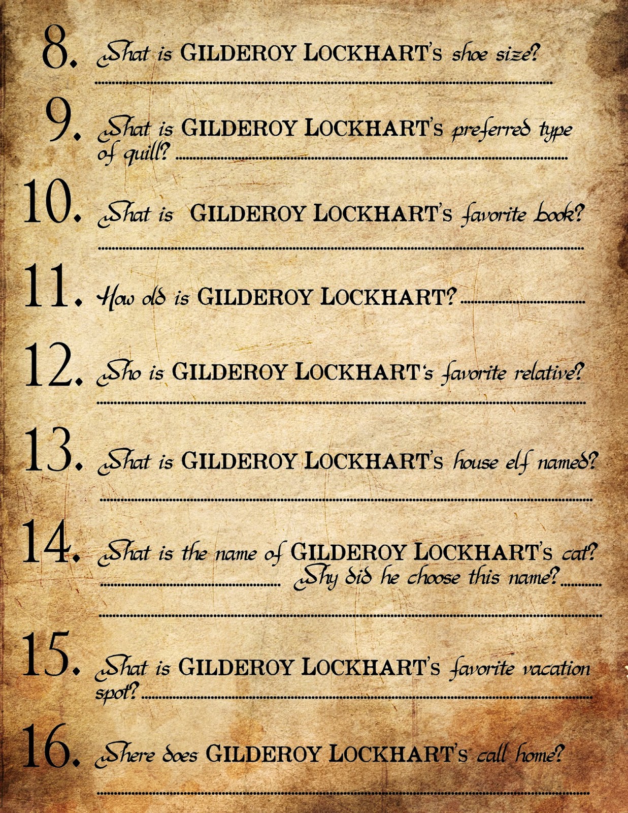 8. Gilderoy Lockhart nunca venceu o Campeonato de Duelos Dunstable para assistentes ou apenas se afastou do posto?